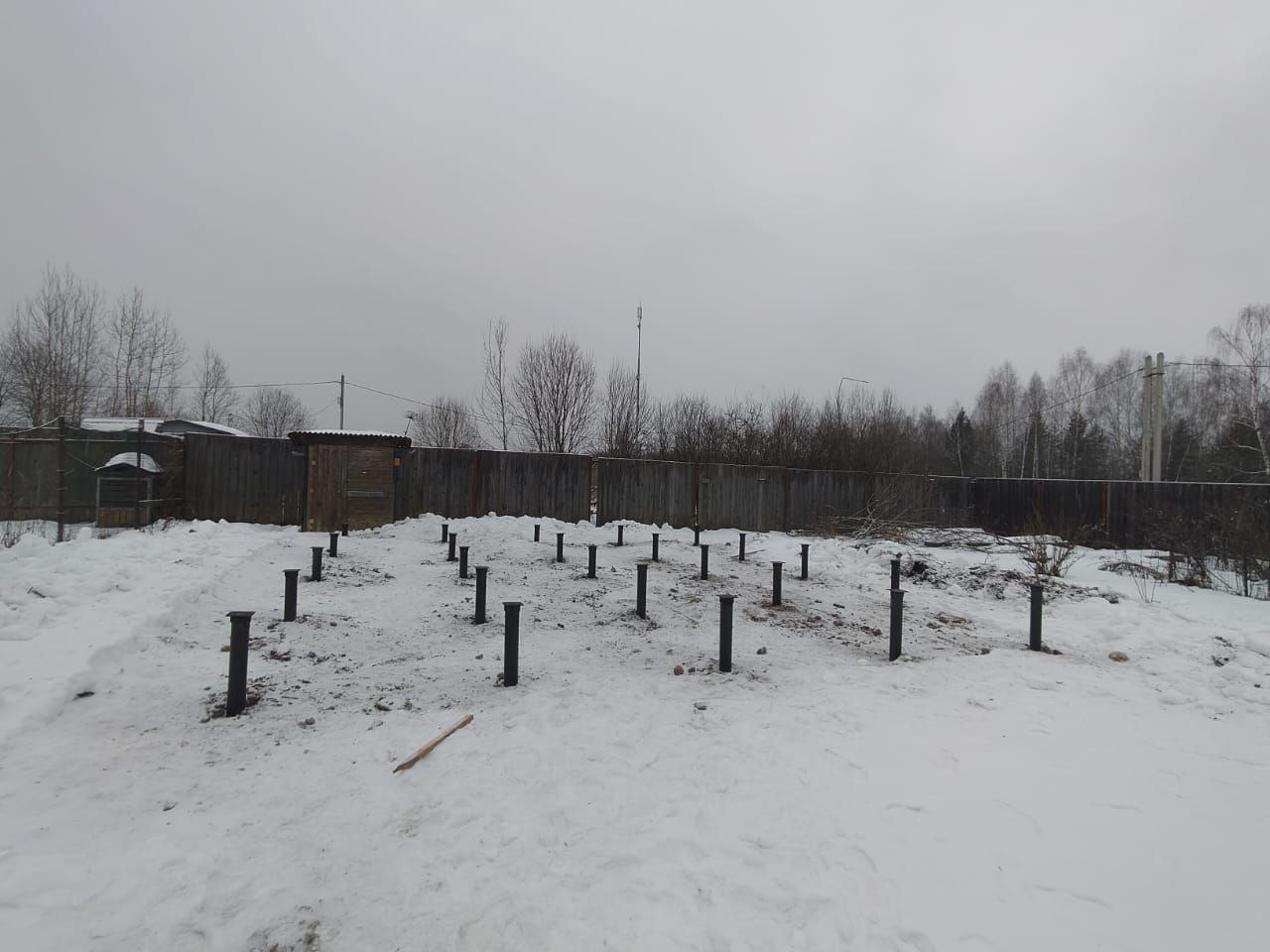 Закрутили 25 винтовых свай для строительства дома 8х8м в зимний период