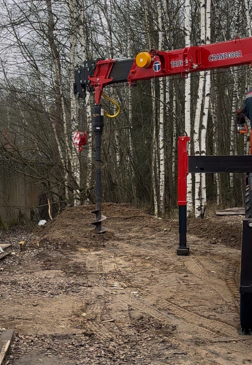 —Монтаж винтовых свай спецтехникой в труднодоступных местах в Протвино
